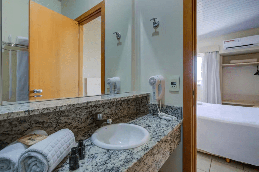 Ideal para quem quer acordar, atravessar e já estar dentro do parque.